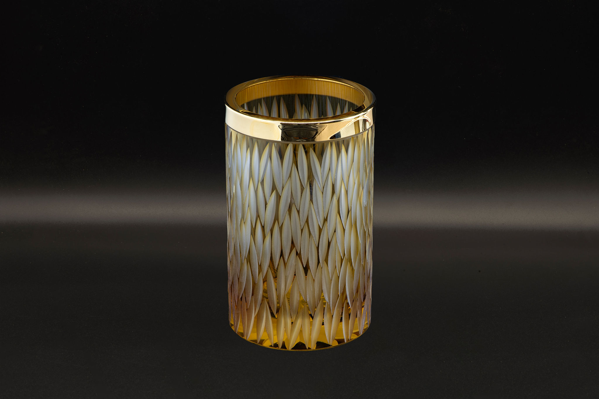 Hand Cut Crystal, Brush Holder, Amber Blaze, Gold