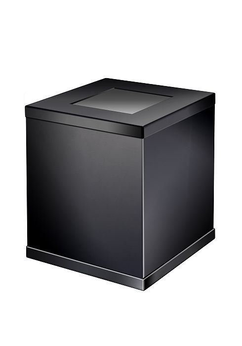 Square open bath bin made of solid brass in a stylish box design with a satin all black finish.