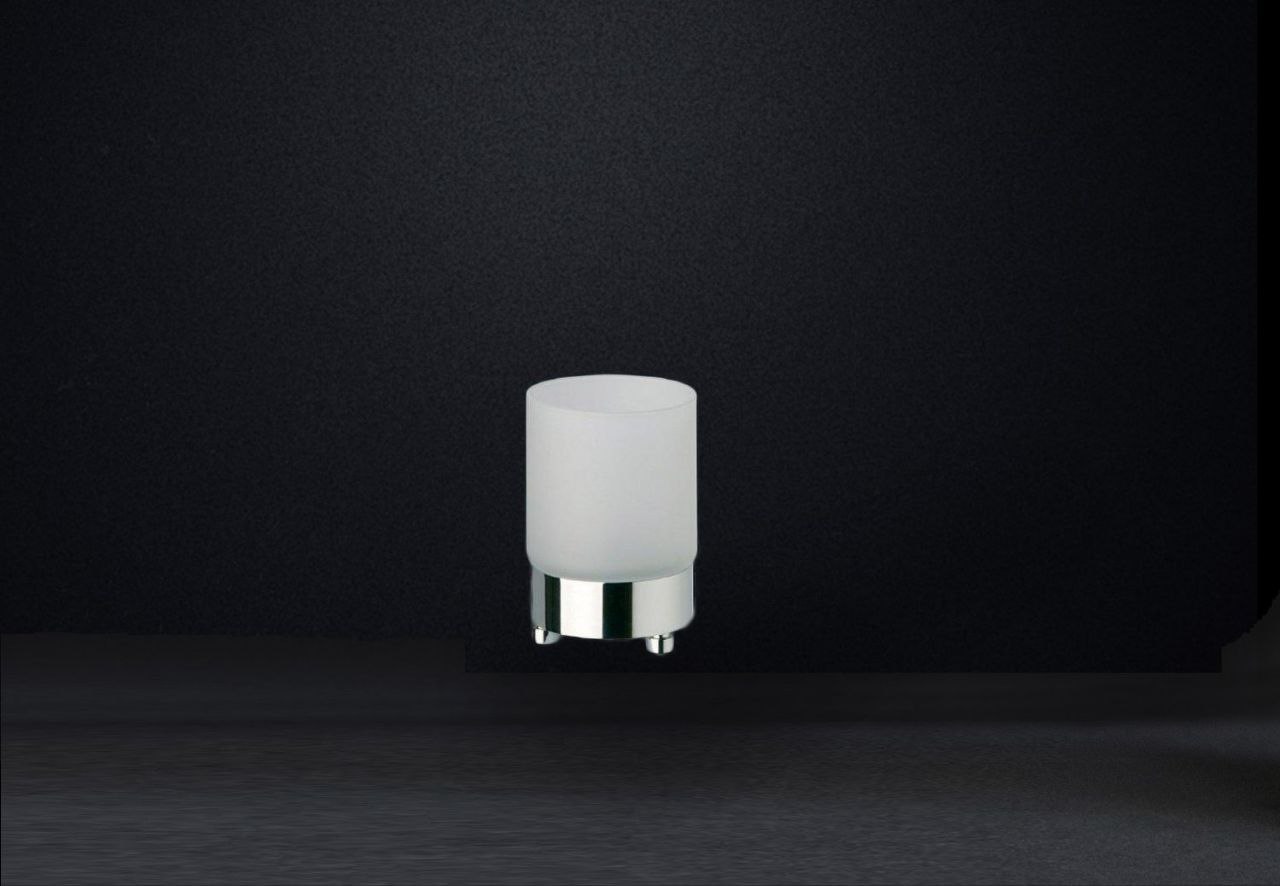 Stylish frosted glass tumbler on a solid brass base finished in chrome, rustic brushed brass or satin and nickel.