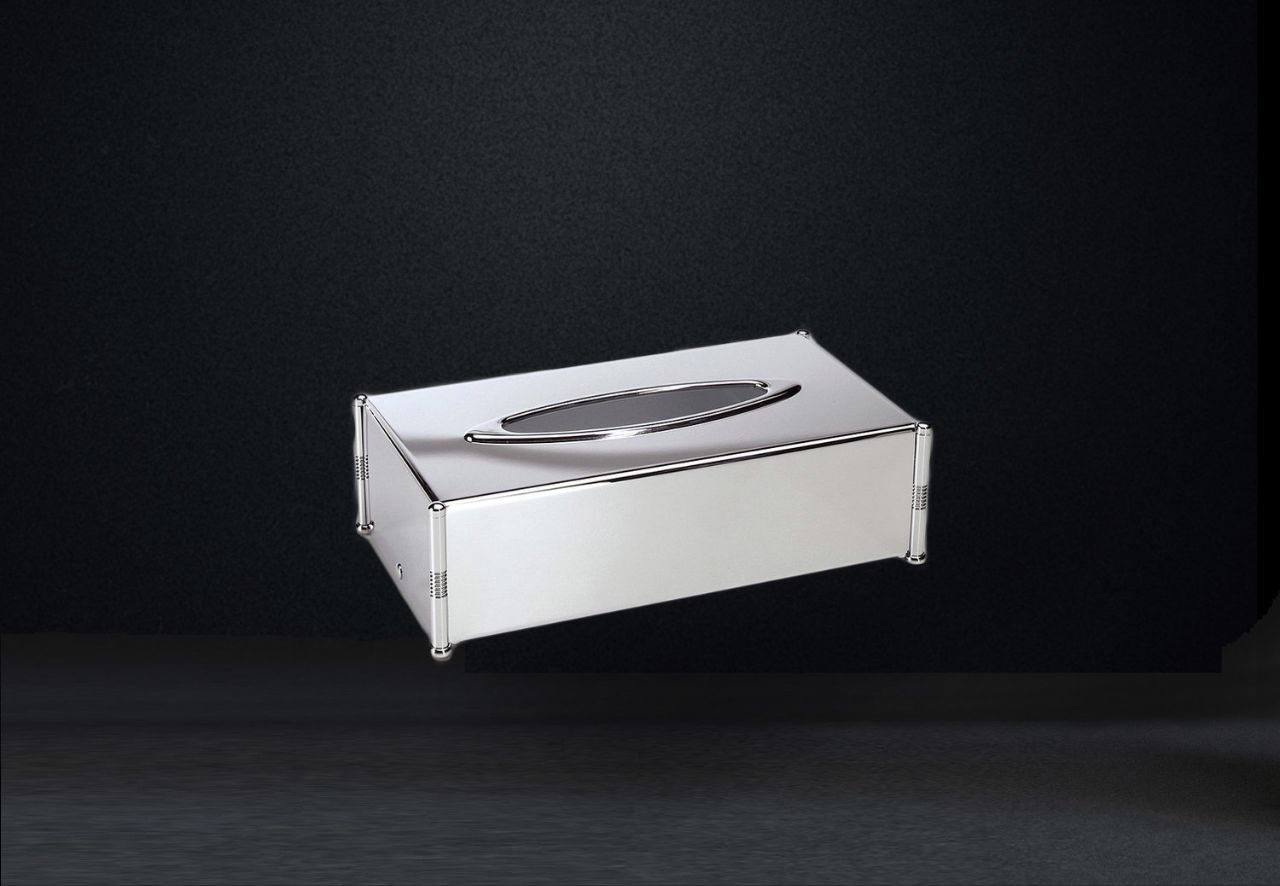 Elegant solid brass tissue box cover with a ribbed detail and is finished in Chrome, 24k gold, satin and nickel or a combination of chrome and 24k gold.