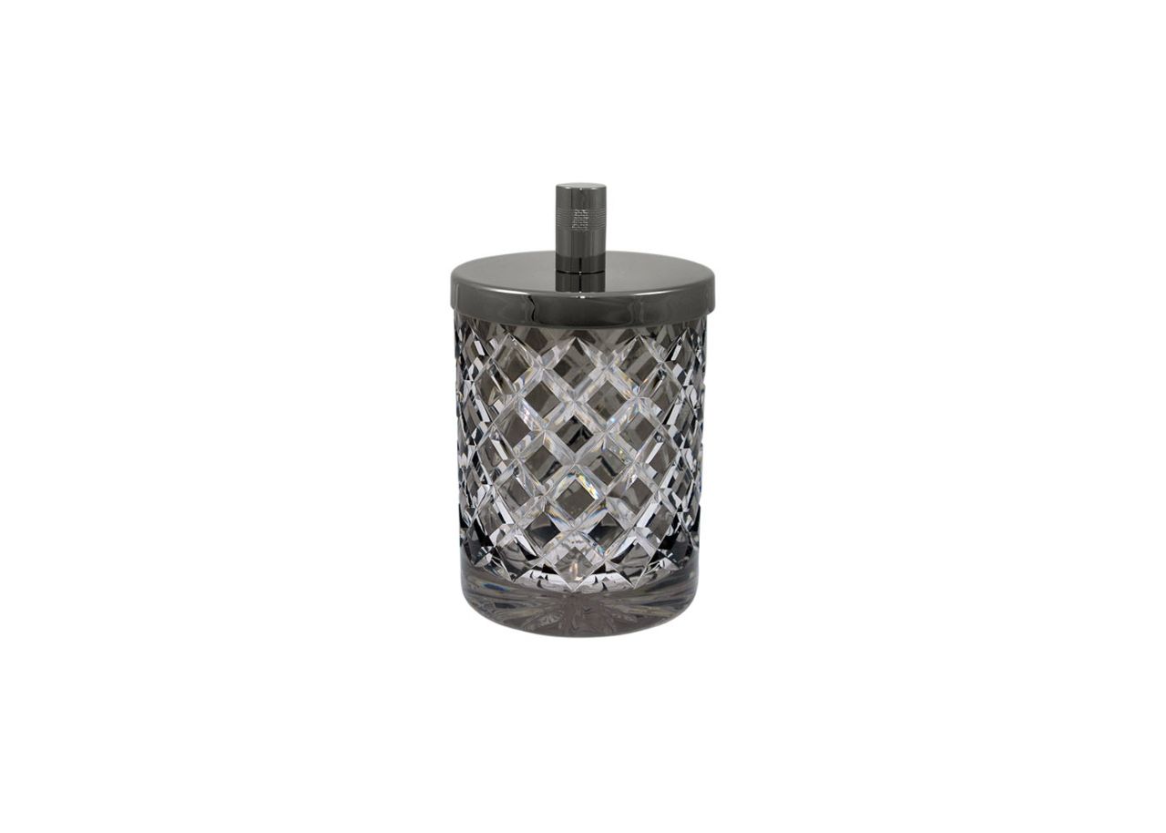 Cover your decor in crystal to evoke the polished glamour of a five-star hotel. These lustrous crystal jars are hand-carved in a delicate ribbed pattern and topped off with a chrome-plated sleek metal ring, also available in a number of bespoke finishes.