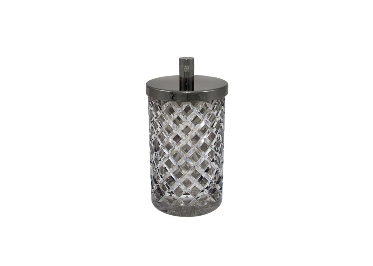 Cover your decor in crystal to evoke the polished glamour of a five-star hotel. These lustrous crystal jars are hand-carved in a delicate ribbed pattern and topped off with a chrome-plated sleek metal ring, also available in a number of bespoke finishes.