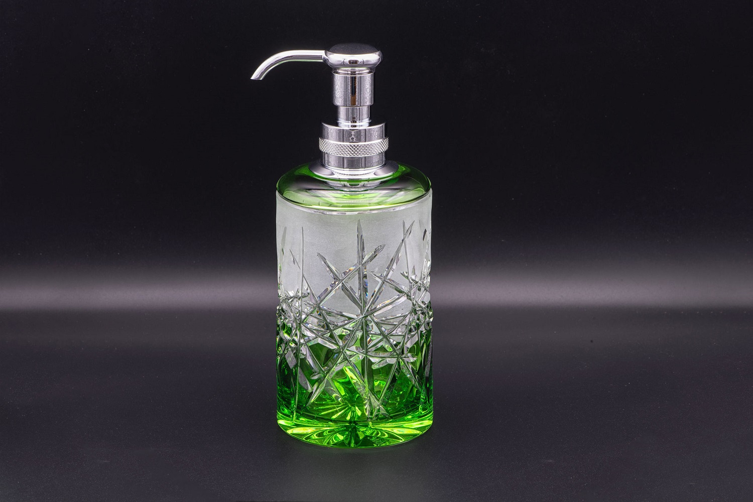 Hand Cut Crystal Soap Dispenser, Frosted Ivy Green, Chrome