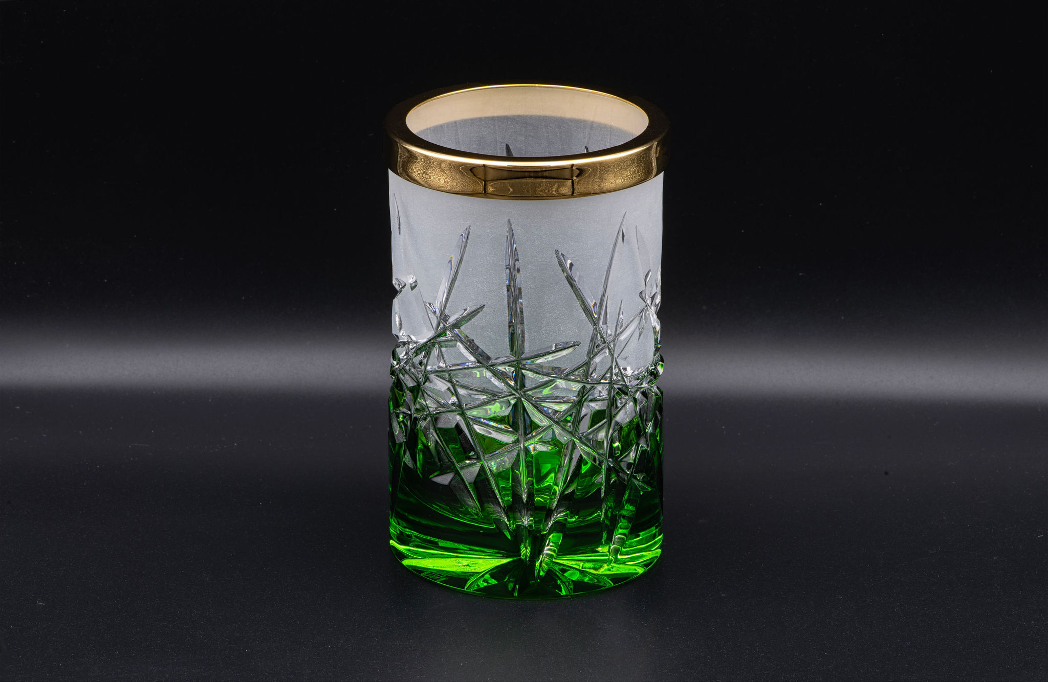 Hand Cut Crystal, Brush Holder, Frosted Ivy Green, Gold