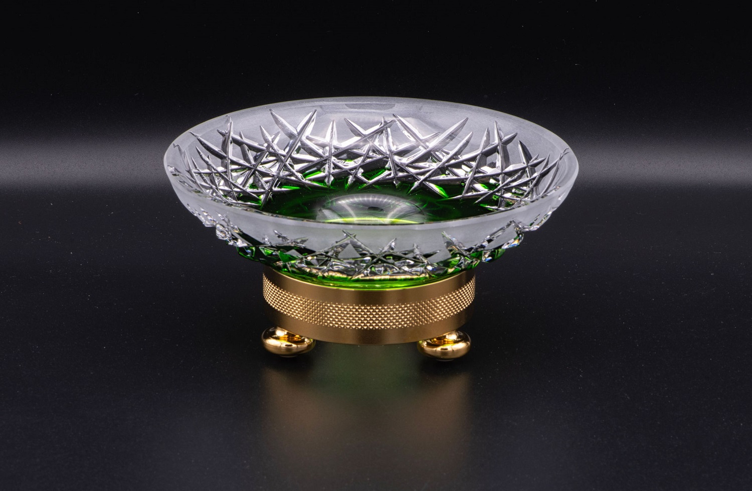 Hand Cut Crystal Soap Dish, Frosted Ivy Green, Gold