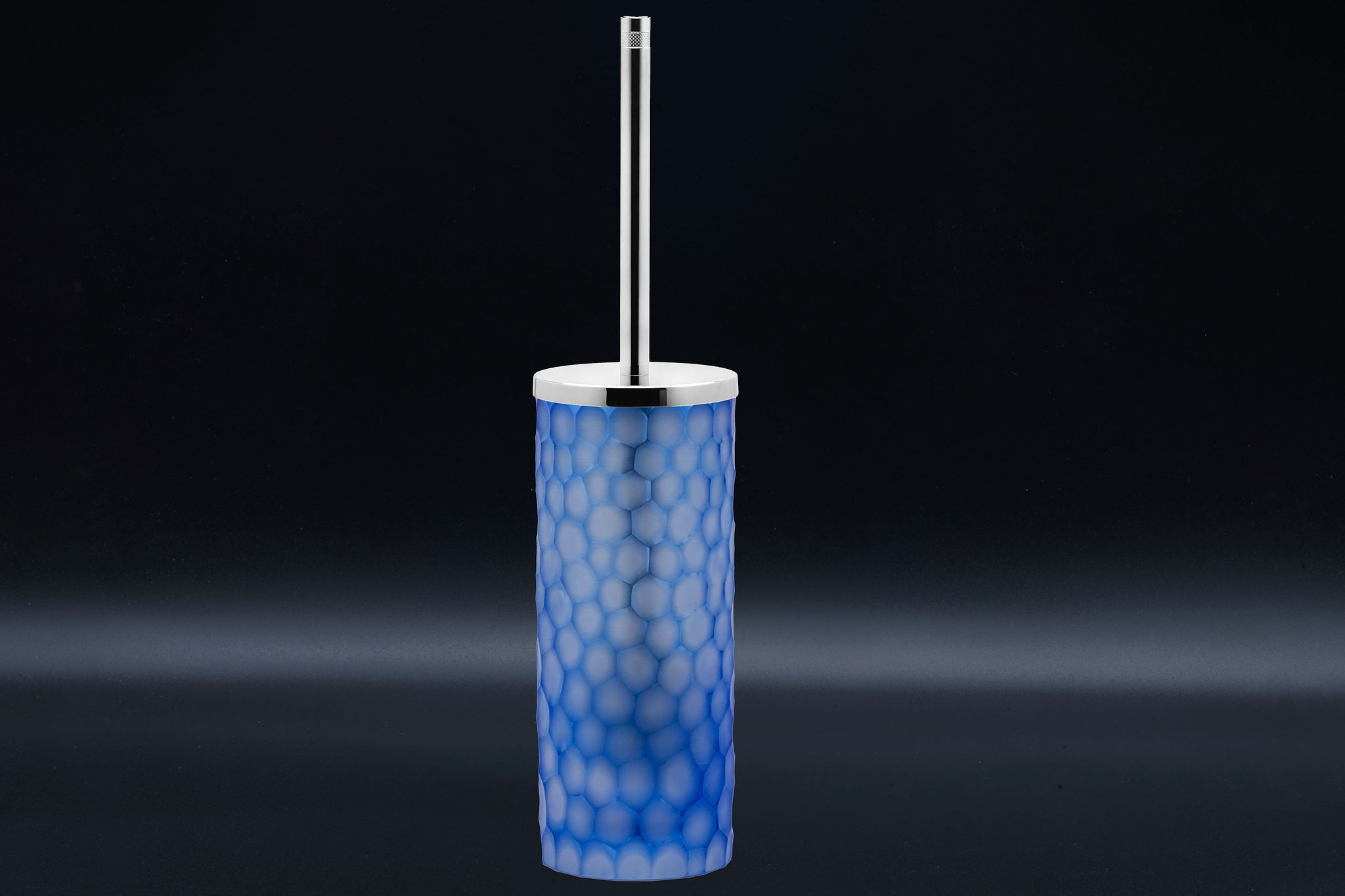 Hand Cut Crystal Toilet Brush, Ocean Honeycomb, Chrome