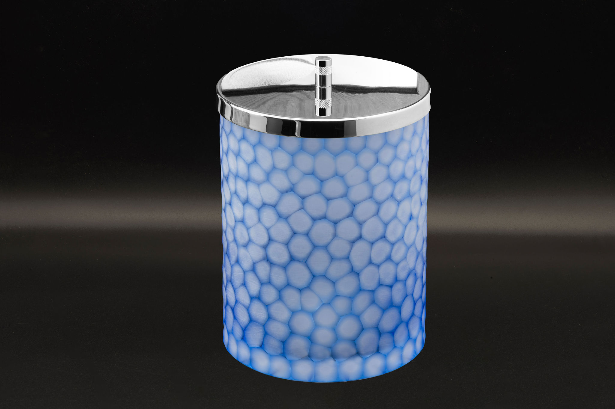 Hand Cut Crystal Bin + Lid, Ocean Honeycomb, Chrome