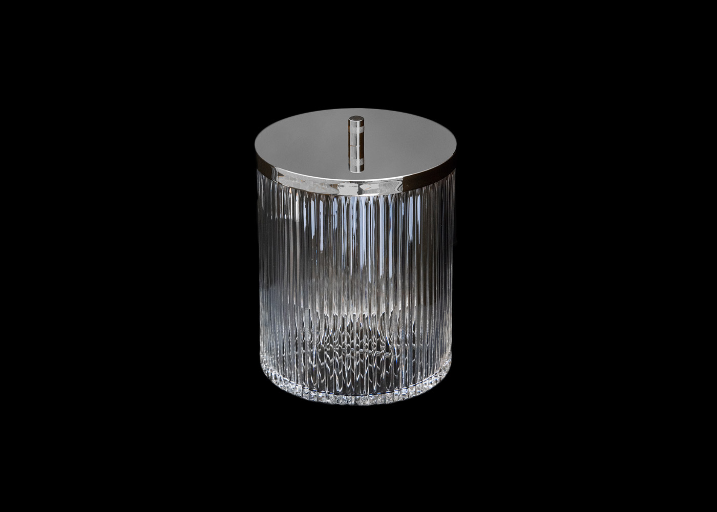 Go for gold and freshen up your bathroom with subtle bursts of metallic dazzle that grace this charming waste bin hand-carved in fine crystal and topped off with a sleek metal lid available in bespoke finishes including 24-karat gold plating.
