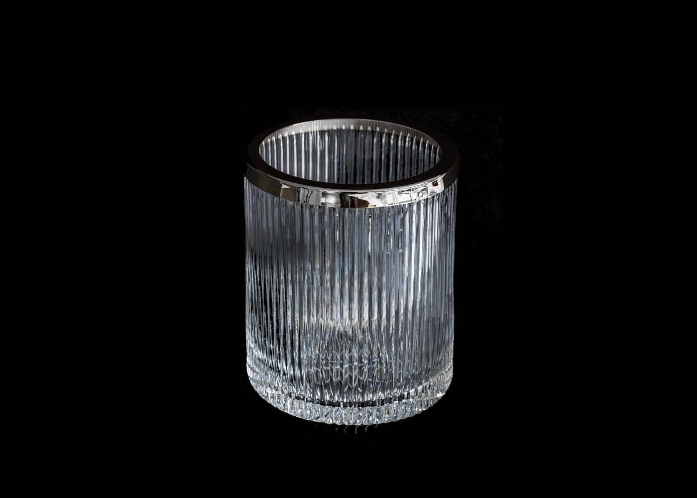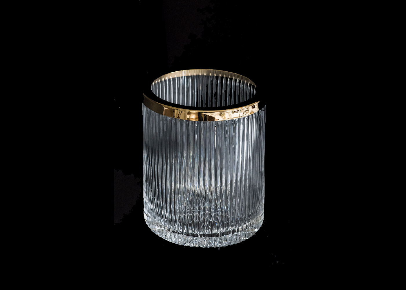 Striking, bold and guaranteed to make an impact, this open crystal waste bin fitted with a glimmering 24-karat gold-plated rim is ideal to keep a busy bathroom looking immaculate.
