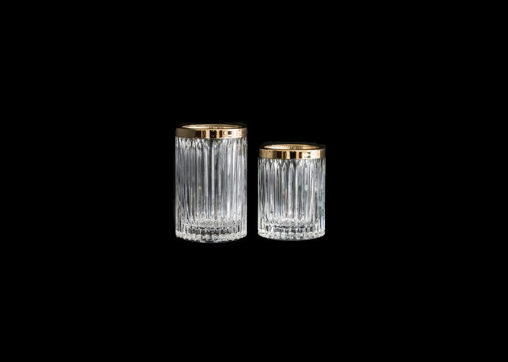 Give your bathroom a swift summer make-over and turn it from basic to brilliant in no time by adding these exquisite crystal brush holders to your mirror display for a truly luxurious feel. Each holder is fitted with a lavish chrome or 24-karat gold-plated lid, available in other bespoke finishes.