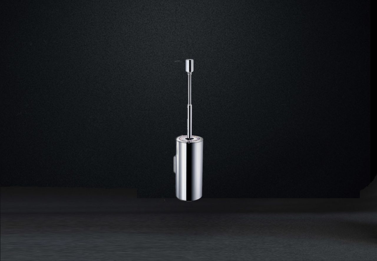 Wall mounted round toilet brush with a telescopic handle with 3 lines of Swarovski crystals placed on top of the base, is made of solid brass and available in chrome (89275-CR) or a 24-karat gold-plated finish (89275-O).