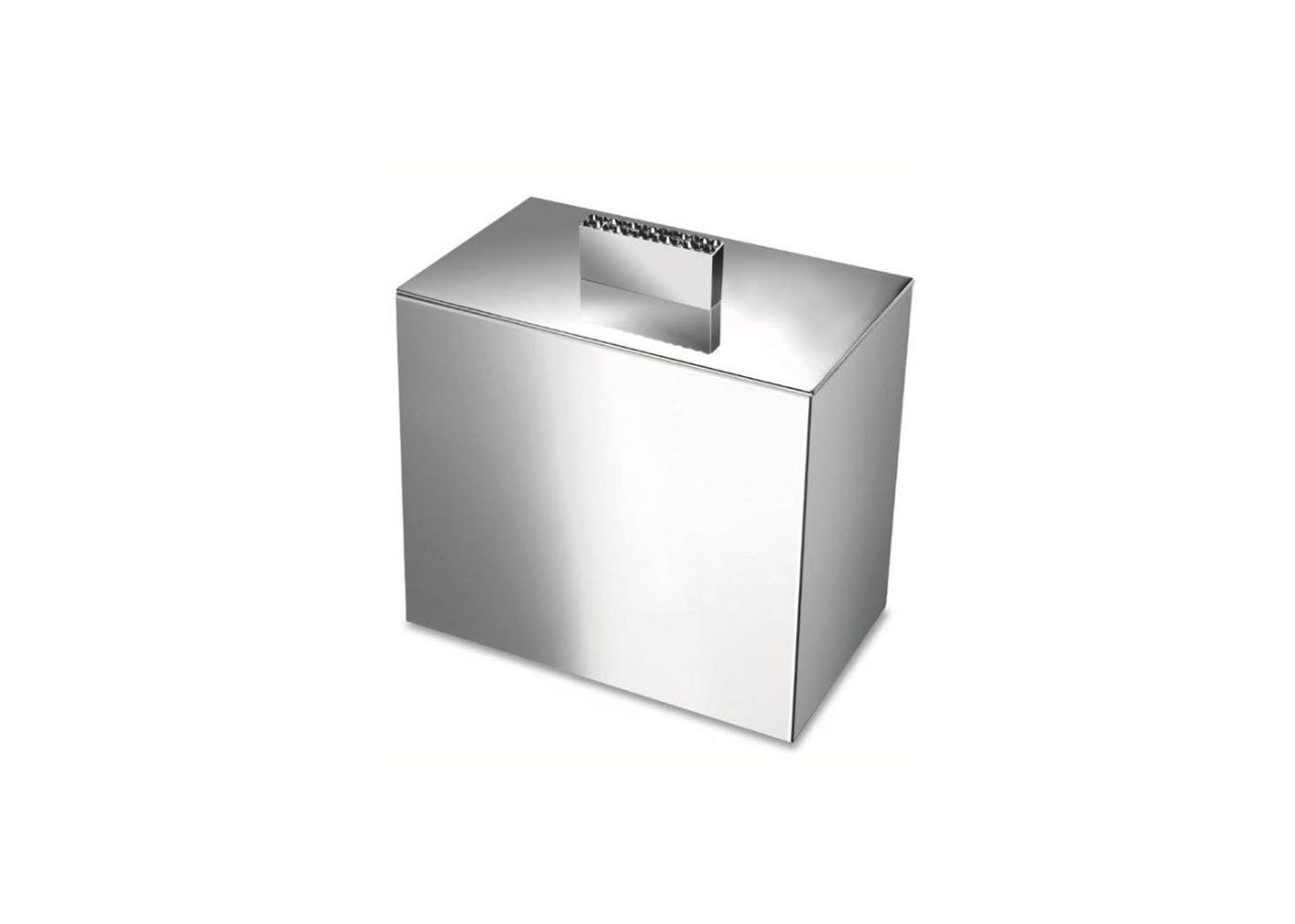 Elegant cotton wool jar made of solid brass has a handle with a delicate row of hand placed Swarovski crystals and is available in a chrome or 24 karat gold finish.
