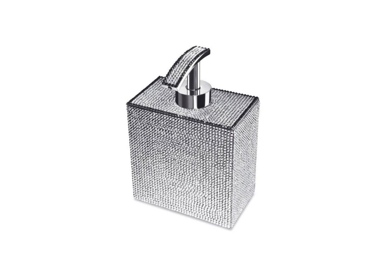 Beautifully designed solid brass soap dispenser is completely covered with Swarovski crystals, all crystals have been hand placed by Swarovski professionals and is finished in a chrome or 24 karat gold plating.