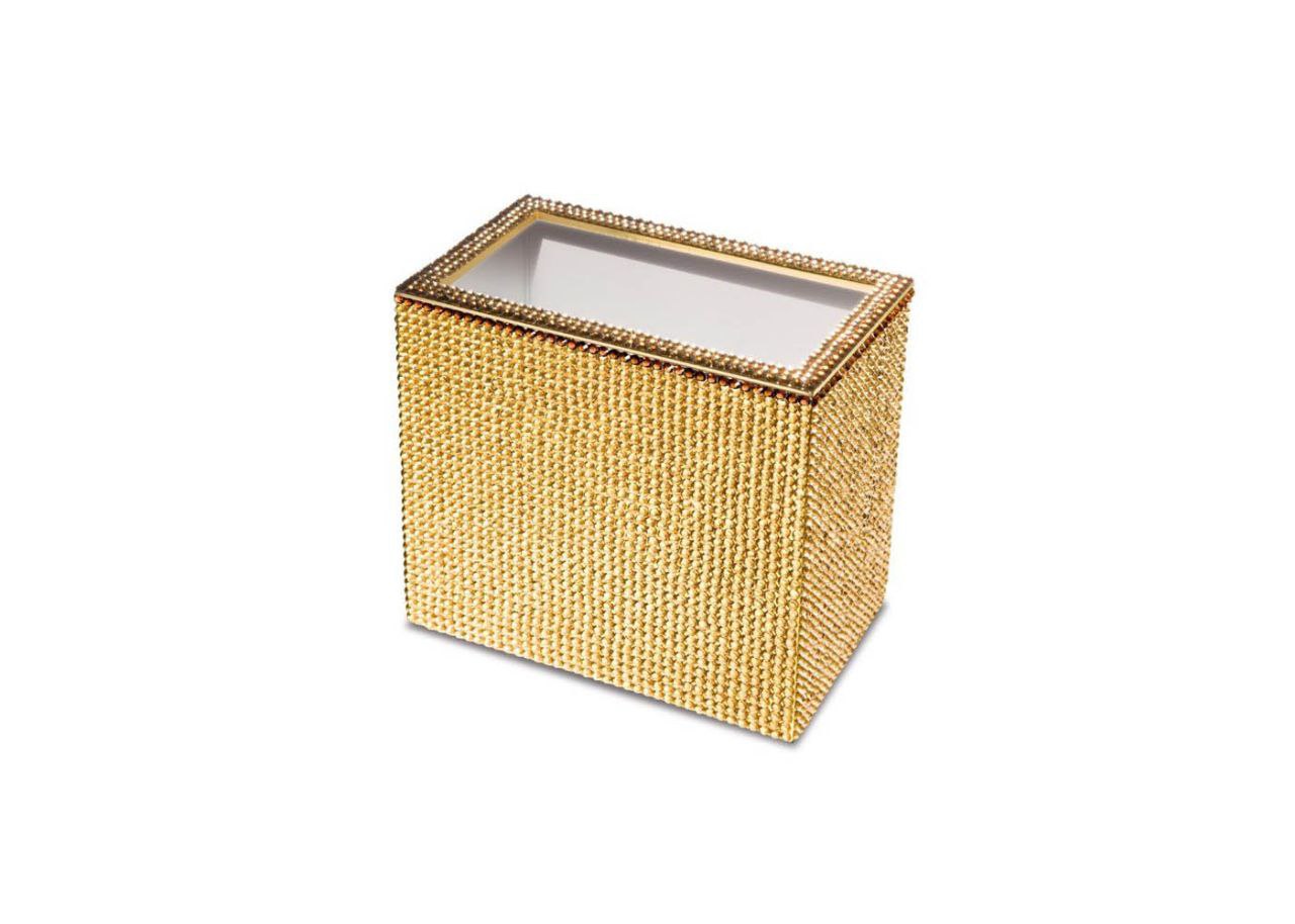 Brushes holder made of solid brass is presented completely coated with Swarovski crystals, hand placed with care by experienced Swarovski designers and is available in a chrome or 24 carat gold finish.