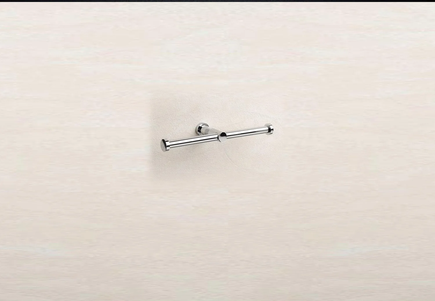 Solid brass double toilet roll holder with ribbed detailing. The holder is available in a chrome (85342-CR) , satin nickel (85342-SNI), 24k gold plate (85342-O) or a combination of chrome and 24 karat gold finish (85342-CRO).